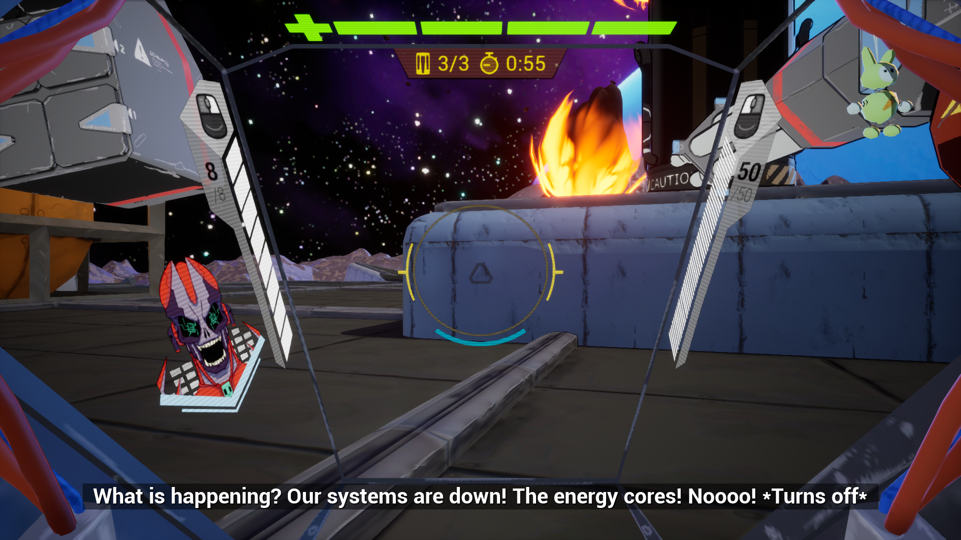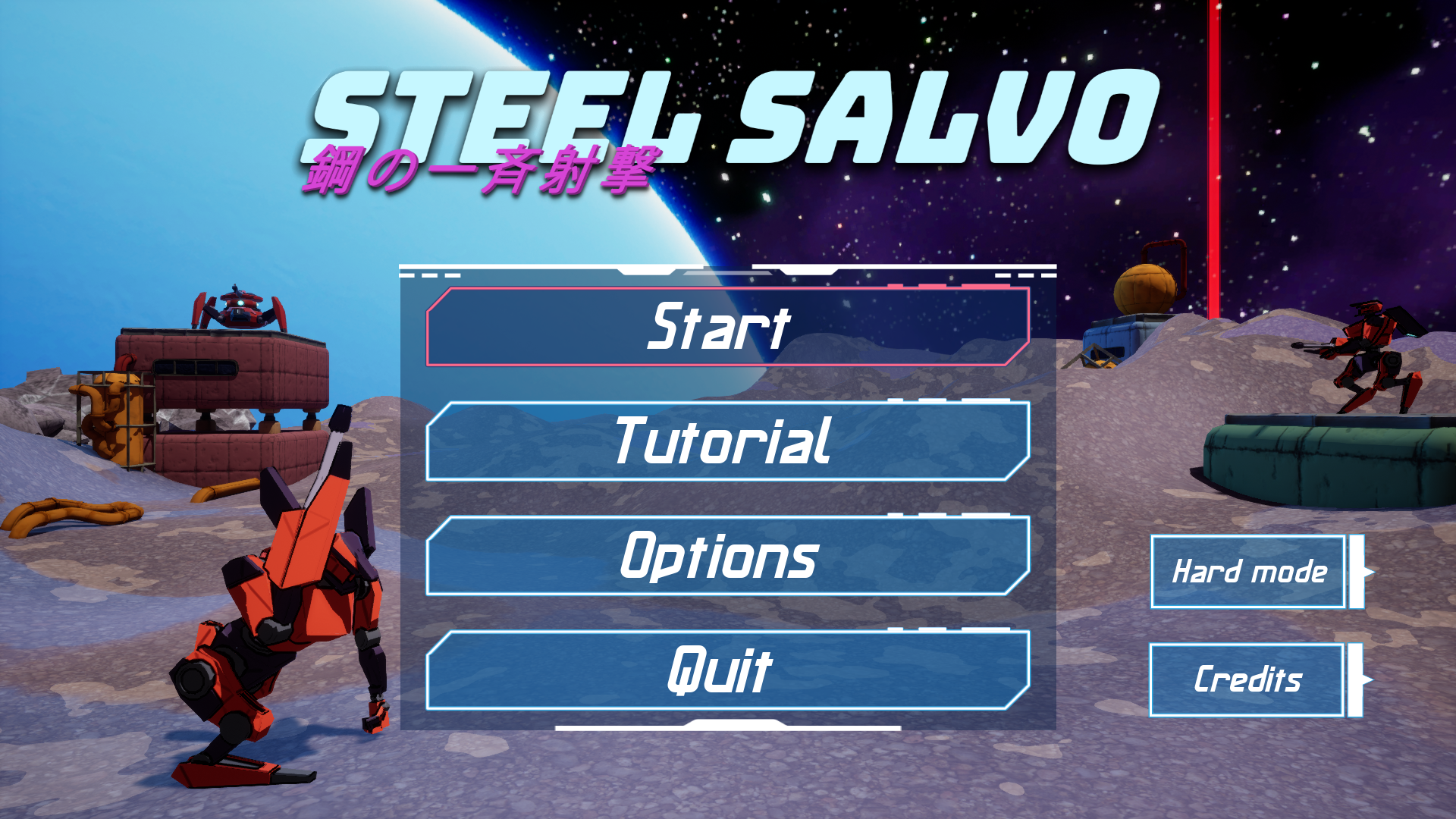 Steel Salvo is full of fast-paced action! Your mech is outfitted with dash and hover tech, carries two huge firearms and an energy sword. Each enemy robot you face is different, from spider-turrets to swarming drones... You'll need to use all of your abilities and stay on aware at all times to avoid being reduced to scrap metal!